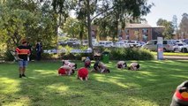 Murrumbidgee Boys Dance Group performs outside Griffith Base Hospital