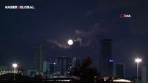 İstanbul'da 21 Haziran en uzun günün gecesinde dolunayın bulutlar arasındaki görüntüsü kartpostallık manzara oluşturdu.