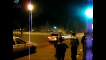 The footage shows the vehicle embedded in the building, with the sheer force of the crash evident from the gaping hole in the wall.