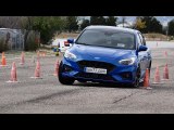 El Ford Puma enlaza curvas rápidas con suma precisión y agilidad. En este ejercicio la velocidad es alta y las reacciones del coche, seguras y fáciles de ejecutar. Las ruedas sufren muy poco deslizamiento en los cambios de apoyo gracias al gran agarre que ofrecen las Goodyear de esta unidad.