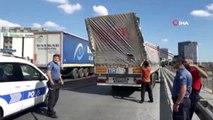 - Küçükçekmece Basın Ekspres Yolu Papaz Köprüsünde iplik yüklü tırın dorsesi yanlış yüklemeden...