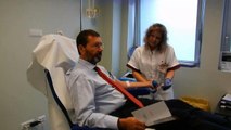 Marino dona il sangue al Sant’Andrea: «Mi faccio riprendere, i giornalisti vogliono vedere il sangue»