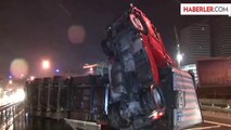 İstanbul Büyükçekmece'de TEM Otoyolu'nda yakıt tankerinin devrilmesi sonucu İstanbul istikametinde trafik durdu.