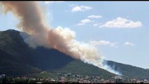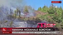 Çanakkale'nin Bayramiç ilçesinde çıkan orman yangınına, Orman Bölge Müdürlüğü ekipleri kontrol altına almak için havadan ve karadan müdahale ediyor.