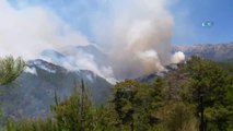 Çıkış nedeni henüz belirlenemeyen yangın, şiddetli rüzgar nedeniyle kısa sürede geniş bir alana yayılırken yangına müdahale ekiplerine takviye yapıldı.