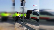 Kocaeli'nin İzmit ilçesinde asfalt çalışmaları sebebiyle ulaşıma kapalı olan yolda mıcır taşıyan tır devrildi. Kazada tırın kupası şaha kalktı.