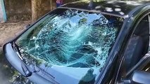 Acidente entre carro e moto, na frente da Unioeste, deixa mulher ferida
