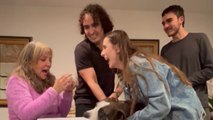 Each child received a present and a card from their future baby cousin.