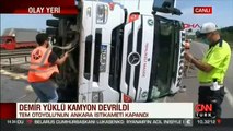 TEM Otoyolu Çatalca mevkii Edirne istikametinde TIR devrildi. Olay yerine çok sayıda polis itfaiye ve sağlık ekibi sevk edildi. Kaza nedeniyle bölgede trafik yoğunluğu oluştu. Ekiplerin müdahalesi sürüyor.