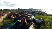 The scrap drew gasps and laughter from the tourists, who had gathered in a circle to capture the unusual sight.