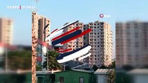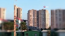 Hatay'ın Antakya ilçesinde 10 katlı iş merkezinin iş makinesiyle kontrollü olarak yıkıldığı anlar kameraya yansıdı.