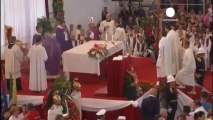 (LaPresse) E' il giorno dei funerali per le tre vittime della strage familiare di Paderno Dugnano. I feretri di mamma Daniela, papà Fabio e del loro piccolo Lorenzo sono arrivati nella chiesa di Santa Maria Nascente, nel comune del milanese dove la famiglia abitava. La folla di partecipanti - circa un migliaio - è stata tenuta fuori per alcuni minuti per permettere ai parenti, entrati da un ingresso laterale, di raccogliersi intorno alle bare. Da dentro la chiesa si sono sentite urla di disperazione. Le esequie sono state officiate dall'Arcivescovo di Milano, mons. Mario Delpini. In carcere per l'omicidio dei genitori e del fratello dodicenne c'è l'altro figlio 17enne, che ha confessato di aver ucciso tutti a coltellate.