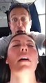Man imitates sleeping woman\'s funny mouth movements