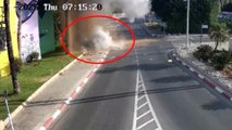 Momento en el que parte de un misil iraní cae en una calle de Or Yehuda (Israel)