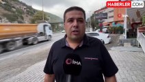 Hatay'da seyir halindeki tırın aynı istikamette ilerleyen otomobili önüne alarak metrelerce sürüklediği anlar kameraya yansıdı.