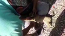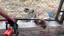 Adana'nın Kozan ilçesinde bir kadın, yolda giderken kafasına salça bidonu sıkışmış köpeği görüp kurtardı.