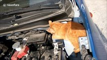 "I heard a car alarm going off in the parking area of my warehouse and went outside to find George, the cat, casually licking herself on the bonnet of the car, completely unbothered by the commotion," the filmer, Rae, shared with WooGlobe. "She’s a warehouse cat, so she’s used to loud noises and is also quite sassy."