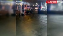 İstanbul'da akşam saatlerinde etkili olan yağmur, Başakşehir'de hayatı olumsuz etkiledi. Cep telefonu kamerası ile kaydedilen görüntülerde Güvercintepe Mahallesi'nde bir esnafın dükkanına su girmemesi için yoğun çaba sarf ettiği görüldü.