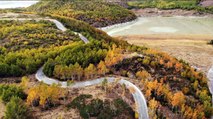 Artvin'in “Sakin Şehir” ünvanlı Şavşat ilçesinde bulunan “Rutav Gölü” sonbaharın renkleriyle görenleri kendine hayran bırakıyor.