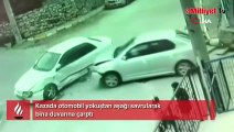 Kazada otomobil yokuştan aşağı savrularak bina duvarına çarptı