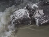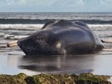 In der Nähe von Kapstadt wurde ein toter Buckelwal angespült. Die Todesursache wurde noch nicht geklärt. Der Kadaver wurde mit einem Bagger vom Strand entfernt.
