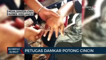 Dengan menahan rasa nyeri di tangan, seorang perempuan asal Kabupaten Maros ini meminta bantuan tim damkarmat Kota Makassar untuk melepas cincin yang membuat jari manisnya membengkak.