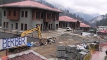 RİZE'nin Çamlıhemşin ilçesinin ünlü Ayder Yaylası, yağan karla beyaza büründü.