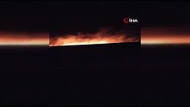 Aksaray'da mısır tarlası ve meranın bulunduğu yaklaşık 400 dönümlük alanda yangın çıktı. Alevlerin geniş bir alana yayıldığı yangın, dron ile havadan görüntülendi.