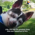 The steep climb too tough for the little pup, so the man, wanting to avoid any struggle for his furry friend, decided to carry it.