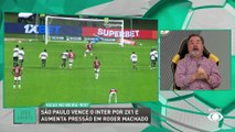 O Internacional manteve sua invencibilidade de 13 jogos e bateu o Criciúma por 2 a 0. Renata Fan e Denílson elogiaram o desempenho do time do Colorado desde a chegada do técnico Roger Machado e projetaram a equipe na reta final do Brasileirão. #Espor