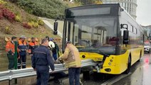 Küçükçekmece'de İETT otobüsü yoldan çıktı: Bariyere ve yön levhalarına çarptı
