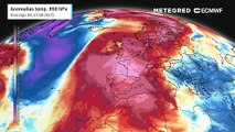 Mapa de anomalías de temperatura a unos 1400 metros, mostrando la irrupción de aire frío prevista.