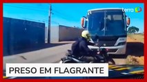 Motociclista invade rodovia na contramão em alta velocidade em fuga