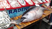 Hobi olarak balığa çıkan Raşit Durgut ve Mustafa Ünal, 24 kilogram ağırlığındaki kuzu balığını olta ile yakaladı.