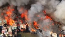 A massive fire has destroyed around 1,000 homes in Isla Puting Bato, Manila’s largest slum area. Drone footage captured the intensity of the blaze as it quickly spread through the densely populated village, leaving many homes reduced to ashes.
