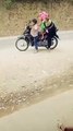 CLIP- Ngồi xe máy chân không chạm đất, cậu bé vẫn cầm lái đèo 3 người phía sau -span class=-marker----span-