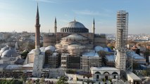 Türbelerin, sıbyan mektebinin ve muvakkithanenin restorasyonunun tamamlandığı Ayasofya'da dev iskele kuruldu: Bin 500 yıllık cami niteliksiz sıvalardan arındırılacak.