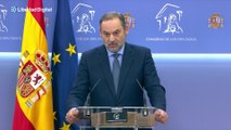 El exministro de Transportes José Luis Ábalos ha presentado este jueves una denuncia ante la Fiscalía General del Estado (FGE) en la que señala que la Unidad Central Operativa de la Guardia Civil (UCO) interceptó su "correspondencia privada", siendo aforado como diputado, en el marco de la investigación del 'caso Koldo' y subraya que con este hecho "de suma gravedad" se vulneró su derecho fundamental al secreto de las comunicaciones. (Fuente: Europa Press / Congreso)