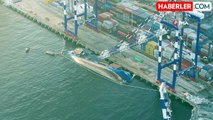 İSTANBUL (İHA) - İstanbul Ambarlı Mardaş Limanı’nda AMNAH isimli konteyner yüklü gemi sabaha karşı yan yattı.