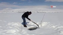 Buz gibi havada gölde sörf yaptı