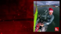 Bursa'nın İznik ilçesinde yelken antrenörlüğü yapan Mustafa Öncü, soğuk havaya rağmen İznik Gölü'nde sörf yaptı. Gösterisi sosyal medyada büyük ilgi topladı.