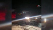 İnegöl'de etkili olan kar yağışında vatandaşlar araçta mahsur kaldı