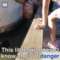 But the decision quickly backfired when a large wave rushed upwards and threw her off balance.