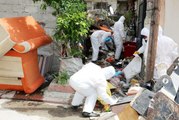 Toroslar belediyesi ekipleri yaşlı bir kişinin kaldığı eve özel kıyafetlerle girerek 10 kamyon çöp çıkardı.