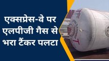 कन्नौज: आगरा लखनऊ एक्सप्रेसवे पर पलटा एलपीजी भरा टैंकर, पुलिस ने आवागमन कराया बंद