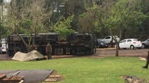 Realeza, PR – Um grave acidente marcou a manhã deste domingo (12) no trevo de acesso a Realeza, no sudoeste do Paraná. Um caminhão carregado com 25 toneladas de carne tombou após o motorista perder o controle do veículo por volta das 11h40, segundo informações da Polícia Rodoviária Estadual (PRE).