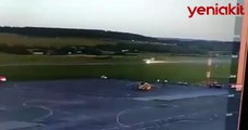 İngiltere'de kuş çarpmasının ardından savaş uçağı pilotu, kanopiyi fırlatarak acil iniş yaparken o anlar kameralara yansıdı.
