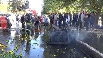 Bursa'da alkollü olduğu iddia edilen seyyar satıcı, meyve sattığı tezgahı ateşe verdi. O anlar, cep telefonu kamerasına yansıdı.