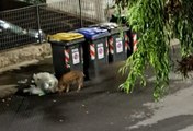 Sassari, cinghiali azzannano le buste della spazzatura in mezzo alla strada