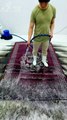 What made the owner of this rug throw it away? Surely they will feel regretful after watching the video. What a fun way to freshen up the carpet, all the dirt and mud is gone from it. Perfect